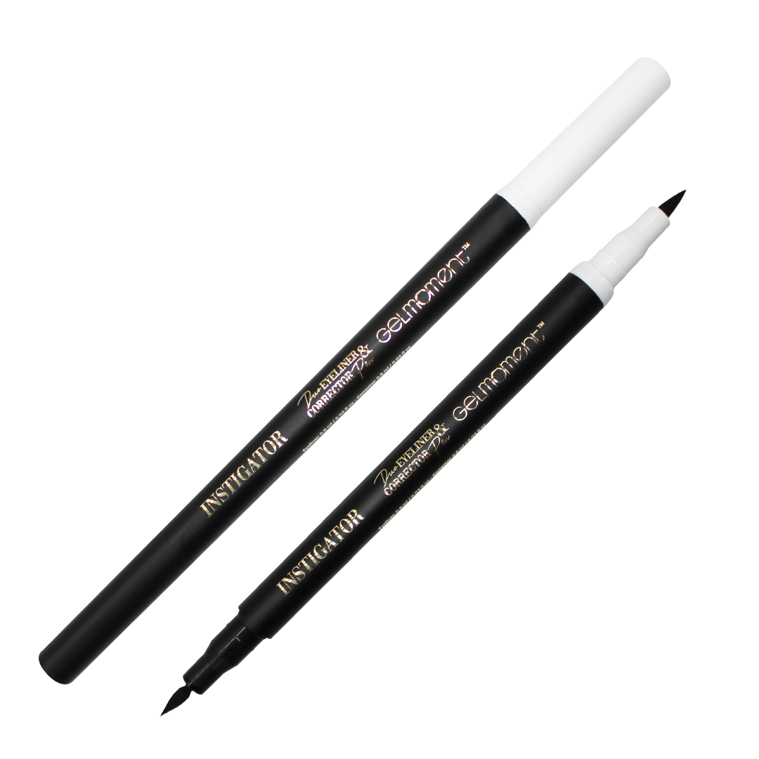 Line your eyes flawlessly with Instigator duo eyeliner and corrector pen, the ideal tool to create any look, from a thin line to a bold cat eye. Designed for beginners and experts alike, this liquid eyeliner includes a corrector pen to clean up any edges and achieve the perfect line every time. Its transfer-proof formula lasts all day without smudging so you can go about your day worry-free.